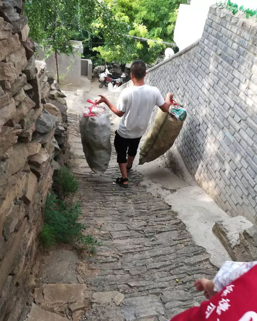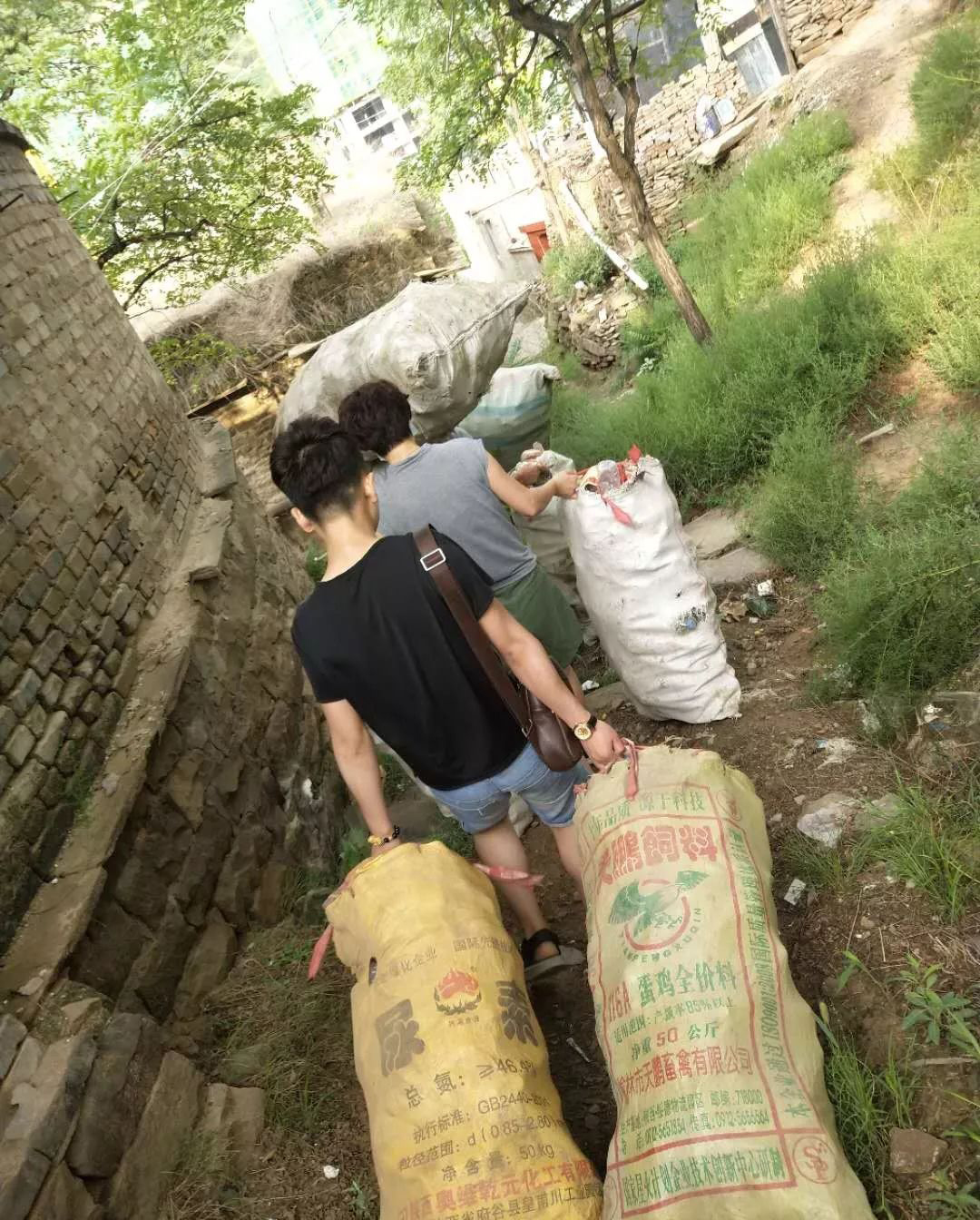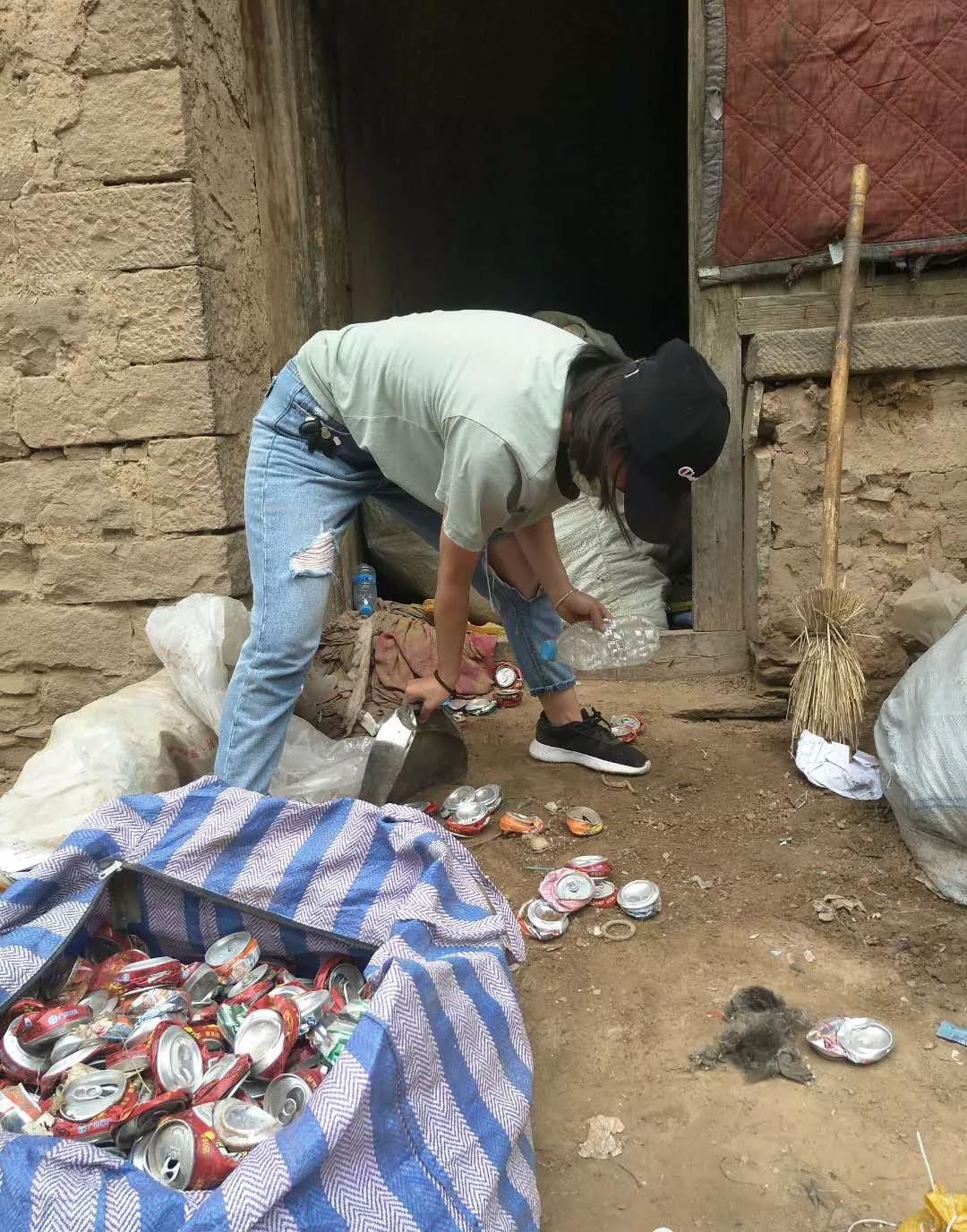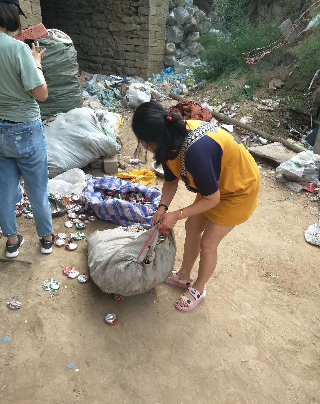 楠楠的奶奶这么多年来一直靠拾荒为生,志愿者们首先将这些废品进行分类,然后联系了废品收购商,随后齐心协力把废品搬下山。